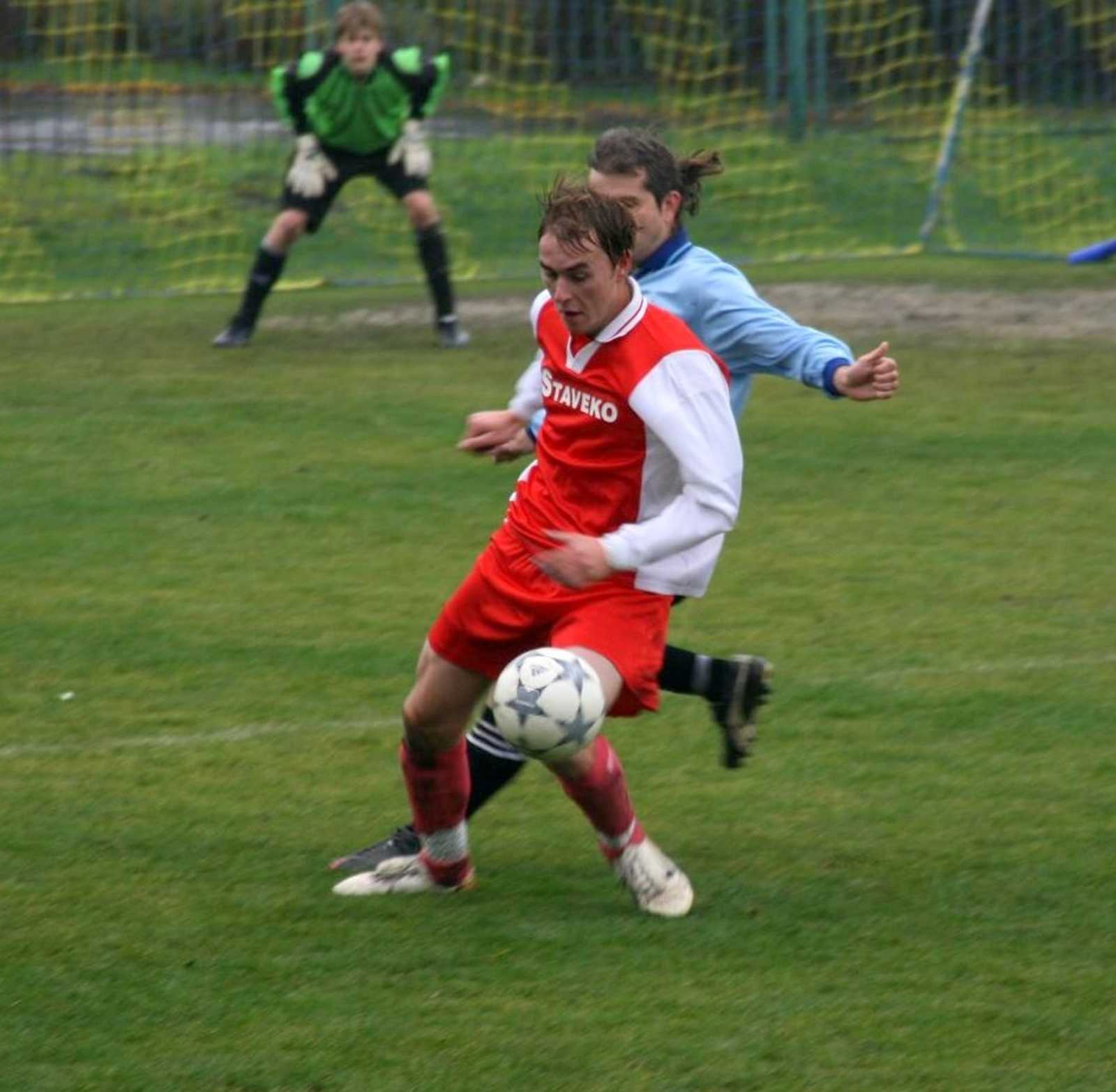 První půlka byla jednoznačně v režii domácích fotbalistů. Už po deseti minutách hry napřáhl z hranice velkého vápna Lopata, ale gólman Lhoty Soukeník jeho prudkou střelu po zemi vytěsnil na roh. Brankář Lhoty se předvedl znovu v polovině prvního dějství. Parádní trefu Kovaříka, kdy míč mířil do šibenice, bravurně vyrazil.