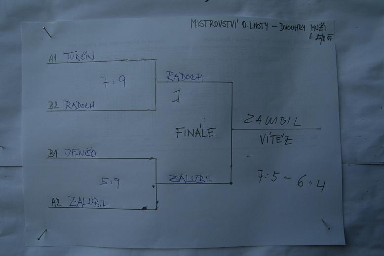 To je tedy překvapení! Lhotským tenistům "vyfoukl" trofej pro tenisového mistra Lhoty fotbalista! Martin Zalubil! Tenisté se můžou utěšovat alespoň tím, že nejde o ledajakého fotbalistu, ale výborného lhotského útočníka, který patří vůbec k nejlepším fotbalovým střelcům na Slovácku.Turnaj, který skončil teprve před chvílí, byl hodně zajímavý a cesta Martina k vítězství nebyla ani trochu jednoduchá. Však se o podrobnostech brzy dočtete....