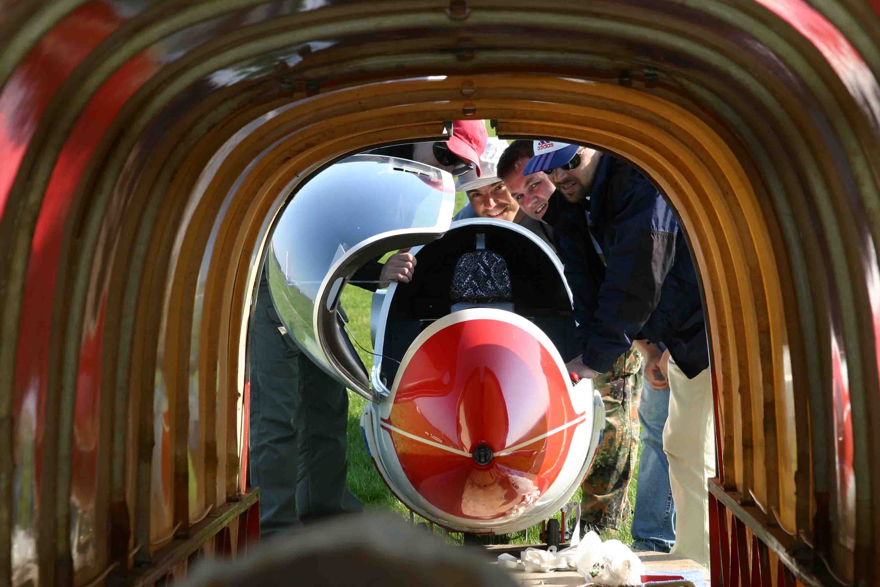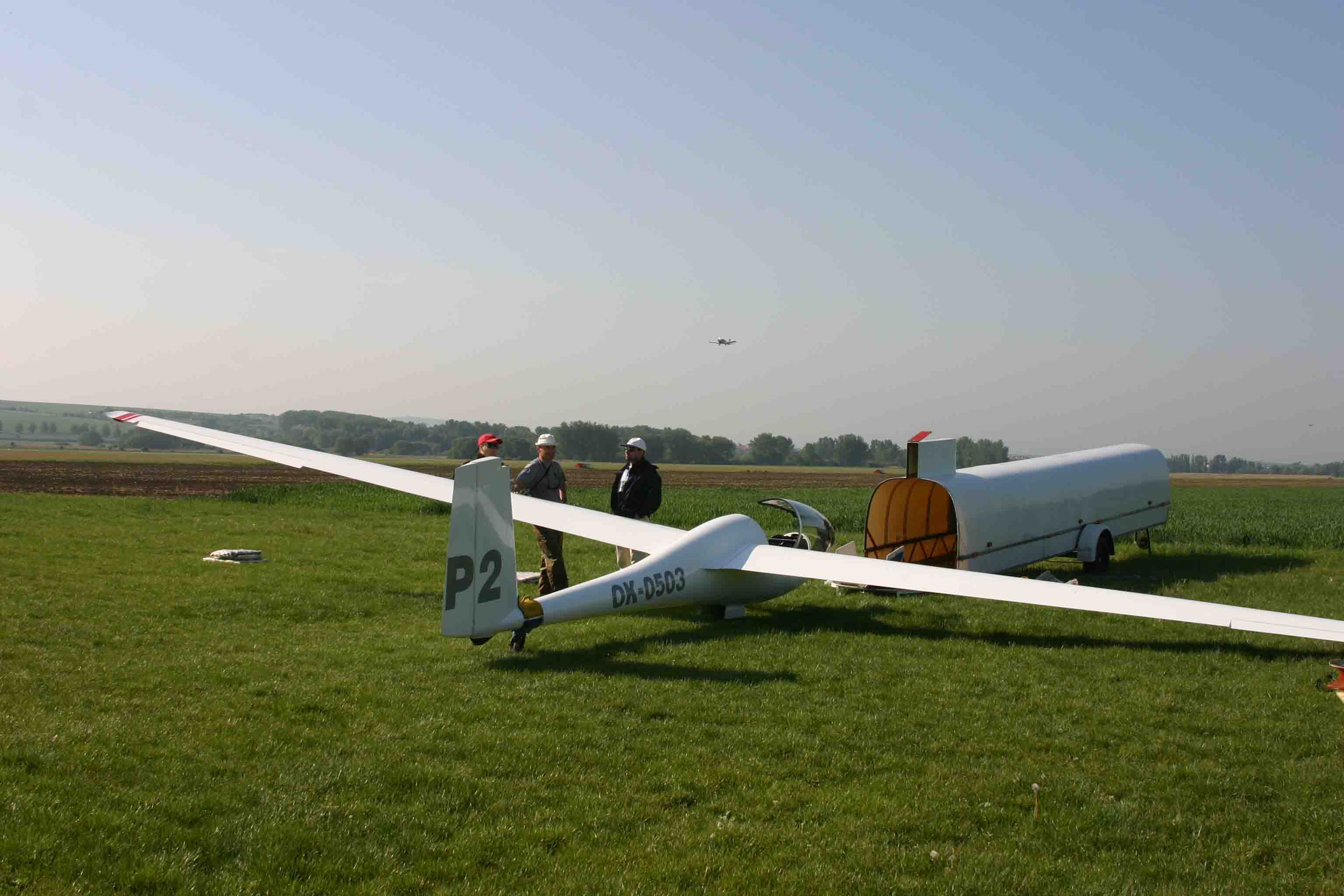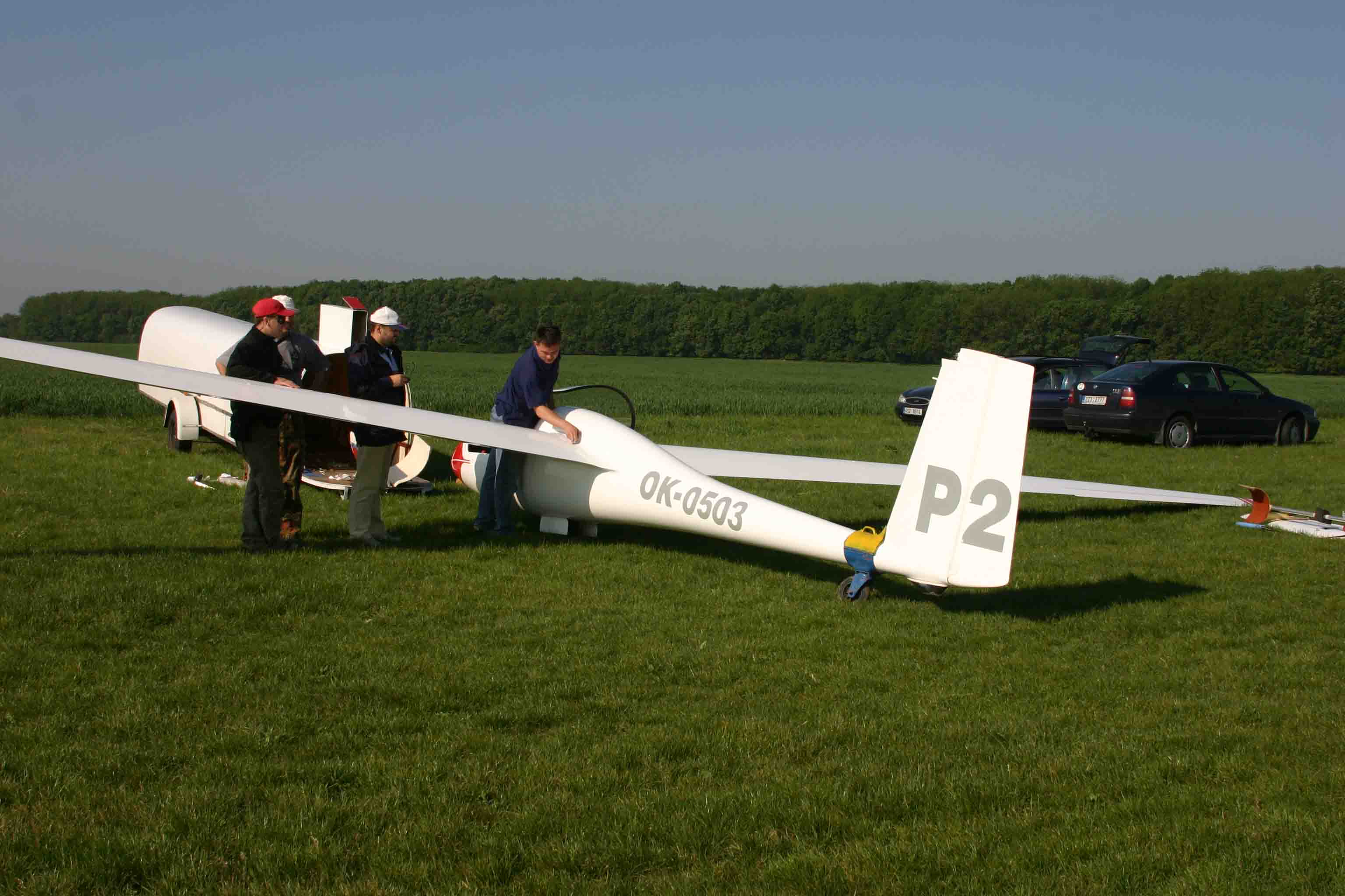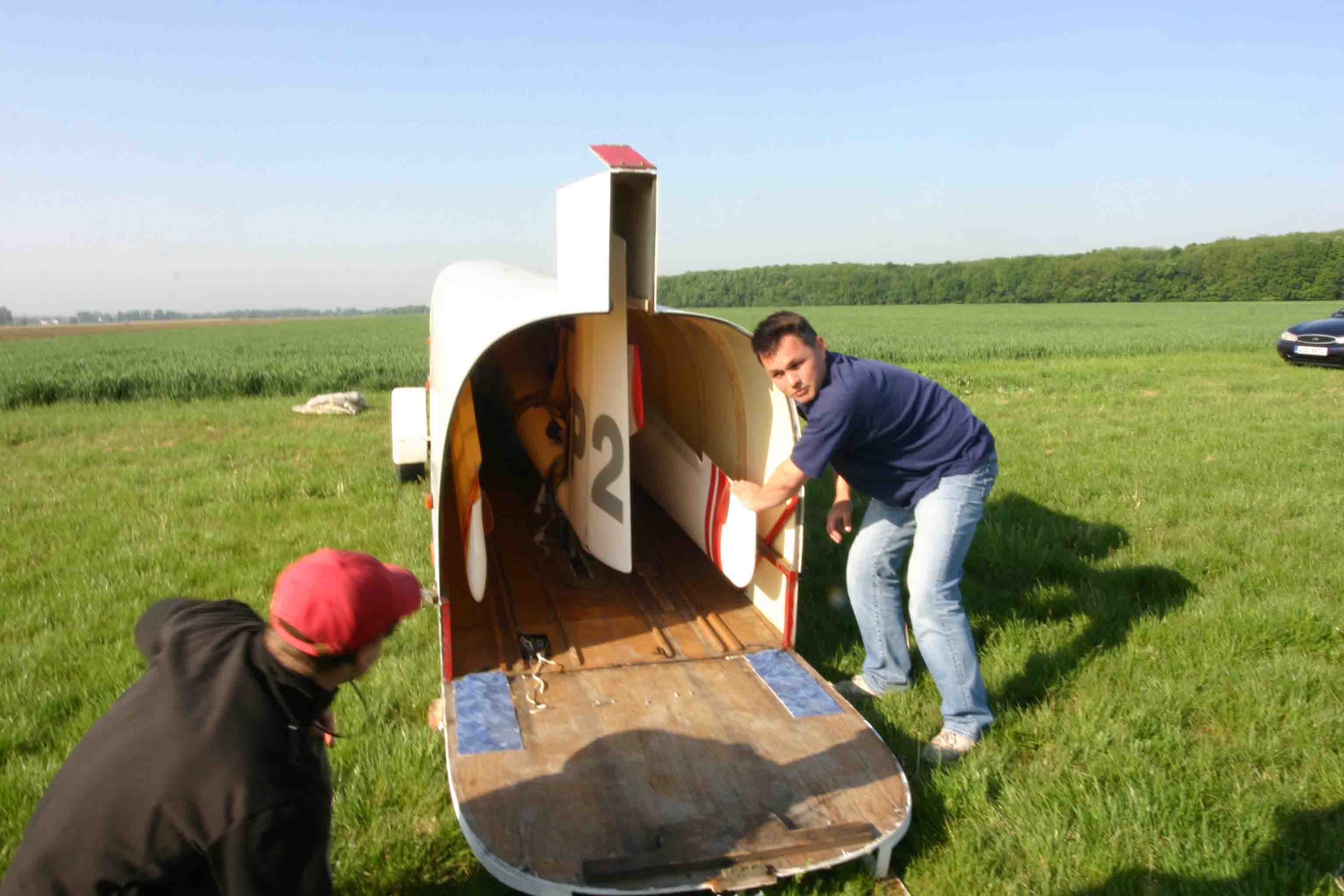 Průhled „tranďákem“ při vykládání trupu kluzáku.