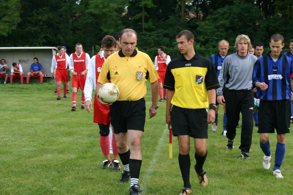 Od začátku zápasu bylo patrno, že domácí chtějí odčinit porážku z 1. kola z Havřic. Již v 5. minutě Zalubil asi z 20 metrů nebezpečně vystřelil, ale hostující brankář jeho střelu kryl. Hosté o sobě dali vědět z následného protiútoku, kdy polosřelu polocentr brankář Soukeník podcenil, ale nakonec se štěstím zlikvidoval. Bylo to jediné zaváhání domácího brankáře.