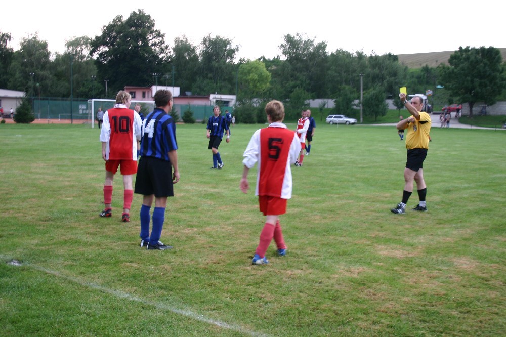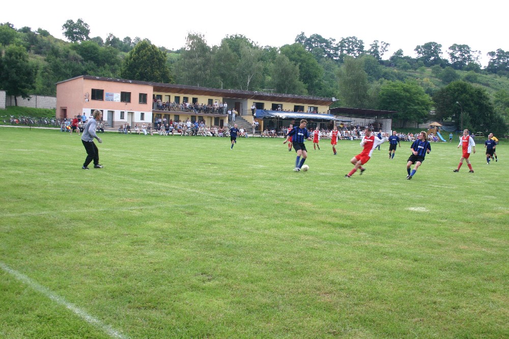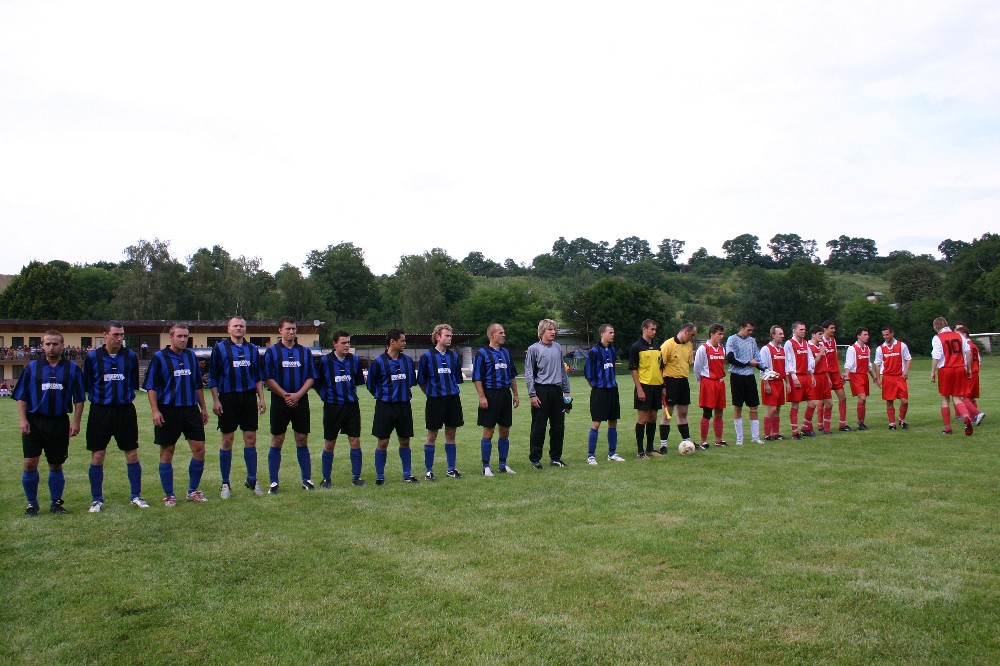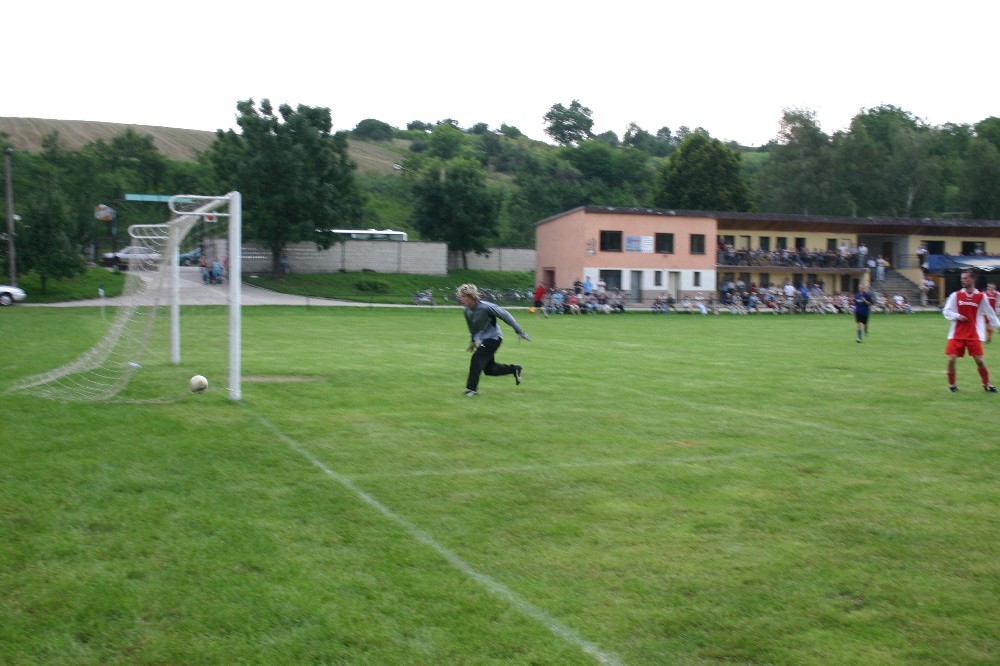 Ve 12.minutě šel Zalubil sám na brankáře, ale neuspěl. Hosté odpověděli o deset minut pozděj, když po centru z levé strany nebezpečně z voleje vystřelili, ale těsně nad. Další gólvou akci vypracoval Martin Zalubil, když po samostatné akci přihrál Jirkovi Dominikovi, který asi z 10 metrů neprostřelil hostující obranu. Ve 31. minutě se vyznamenal brankář Soukeník, když nebezpečnou hlavičku hostů vytáhl na roh. Pět minut před koncem poločasu opět Zalubil po nahrávce Filipa Zbořila pálí z nadějné pozice těsně nad. První poločas byl jasně v režii domácího mužstva, chybělo jediné, góly z vyložených brankových šancí.