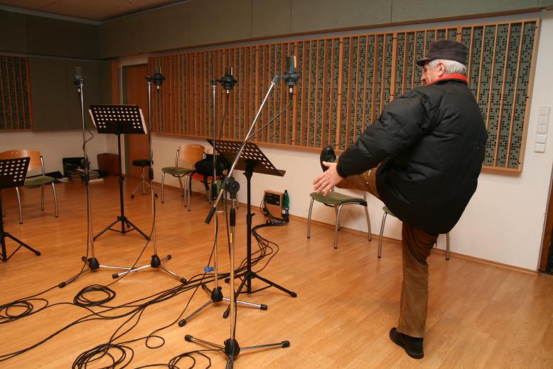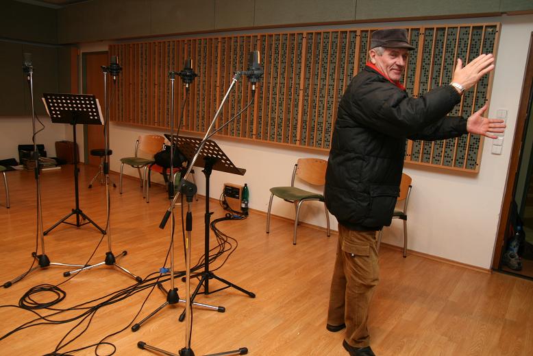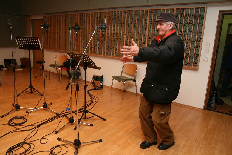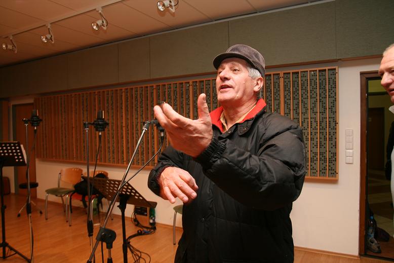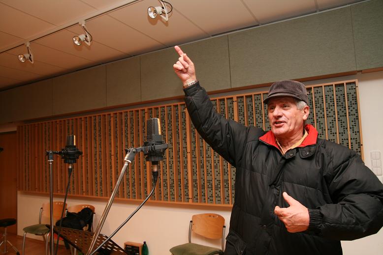 Tak na té fotečce je pan Čambal. Martin Čambal, vynikající zpěvák lidové muziky z Velké nad Veličkou. Museli byste ho slyšet. A vidět. Měl jsem to štěstí v pátek pozdě večer v Základní umělecké škole ve Veselí nad Moravou, kde nahrávali své CD chlapi z Horňáckého mužského sboru ve Velké nad Veličkou. Však se k tomu brzy na stránkách vrátím, ukážu vám i řadu fotek z nahrávání.