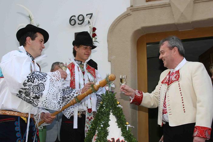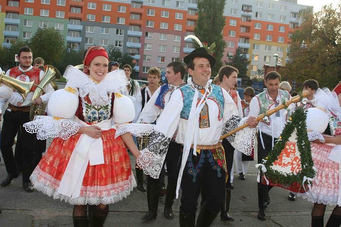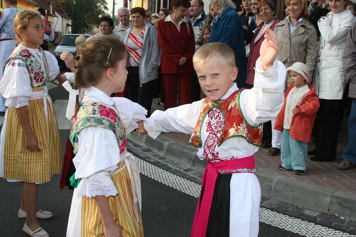 „Není tady taková ta klasická chasa ve věku osmnáct, devatenáct let, která hody v okolních dědinách vždy pořádá. Vedle přípravy koláčků, které nepečeme my, ale objednáváme je, musíme samozřejmě nachystat nejen kroje, ale také vystoupení. Letos jsme si na výpomoc pozvali Spinek ze Vnorov i s drobotinou Spinečkem, aby nám pomohli v průvodu i při odpoledním a večerním vystoupení. Přijel s nimi i mužský pěvecký sbor,“ prozradila umělecká vedoucí souboru Veronika Dvorská. Staršími stárky tentokrát byli Vojtěch Bártek a Marie Juřenová. Mladšími stárky se stali Jiří Hudeček a Veronika Vičarová.