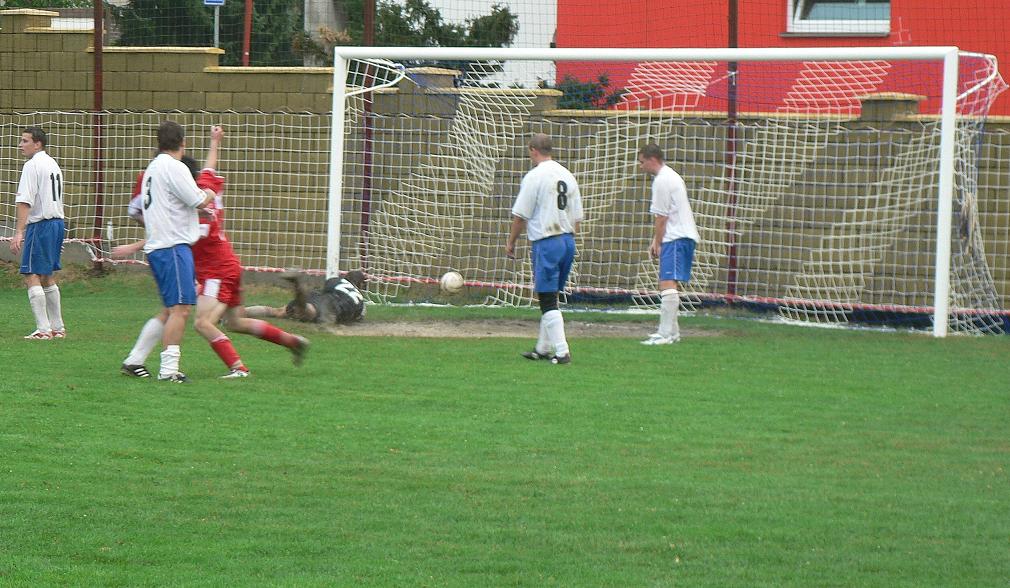 Z následného protiútoku mohlo být vyrovnáno. Hostující obránce Staňa Zbořil v nepřehledné situaci odkopl míč tak nešťastně, že směřoval za záda vlastního brankáře. Gólovou pohromu pro hosty zastavila tyč.
