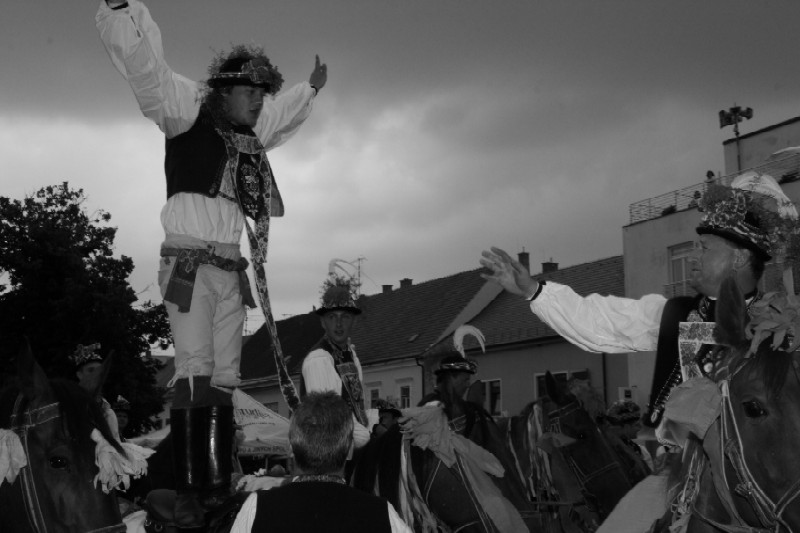 Je konec, skoronská jízda králů končí v nedělním odpoledni své několikahodinové putování Kyjovem a naposledy se zastavuje před radnicí. Přál bych vám vidět vlající hřívy jejích koní. Přál bych vám slyšet podkovy jejích cválajících koní.