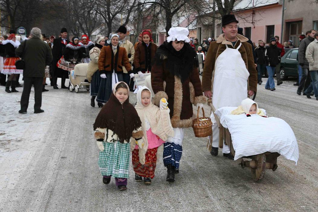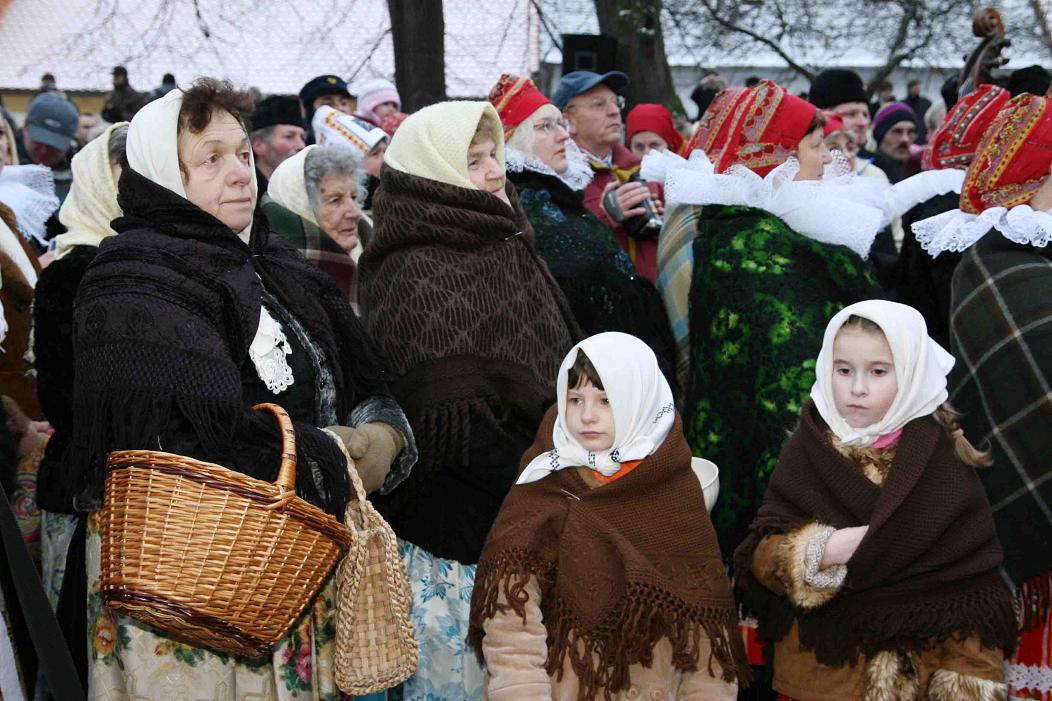 „Jsme tady čtyři generace. Nejstarší prababičce je třiasedmdesát a nejmladší pravnouček má teprve osm měsíců,“ pochlubila se pětačtyřicetiletá babička Marie Jeglová. „Účastníme se každým rokem. Je super, že se sejde celá dědina. Pozdravíme se, společně oslavíme Vánoce a navíc se provětráme. Kroje máme vlastní,“ prozradily ženy.