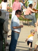 Druhý poločas už se hraje - vykartovaný trenér Josef Dominik mezi diváky.