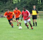 Na vlhkém trávníku se v prvním poločase zhruba po patnácti minutách hry dostali domácí do vedení hlavičkou Franty Pavlase.