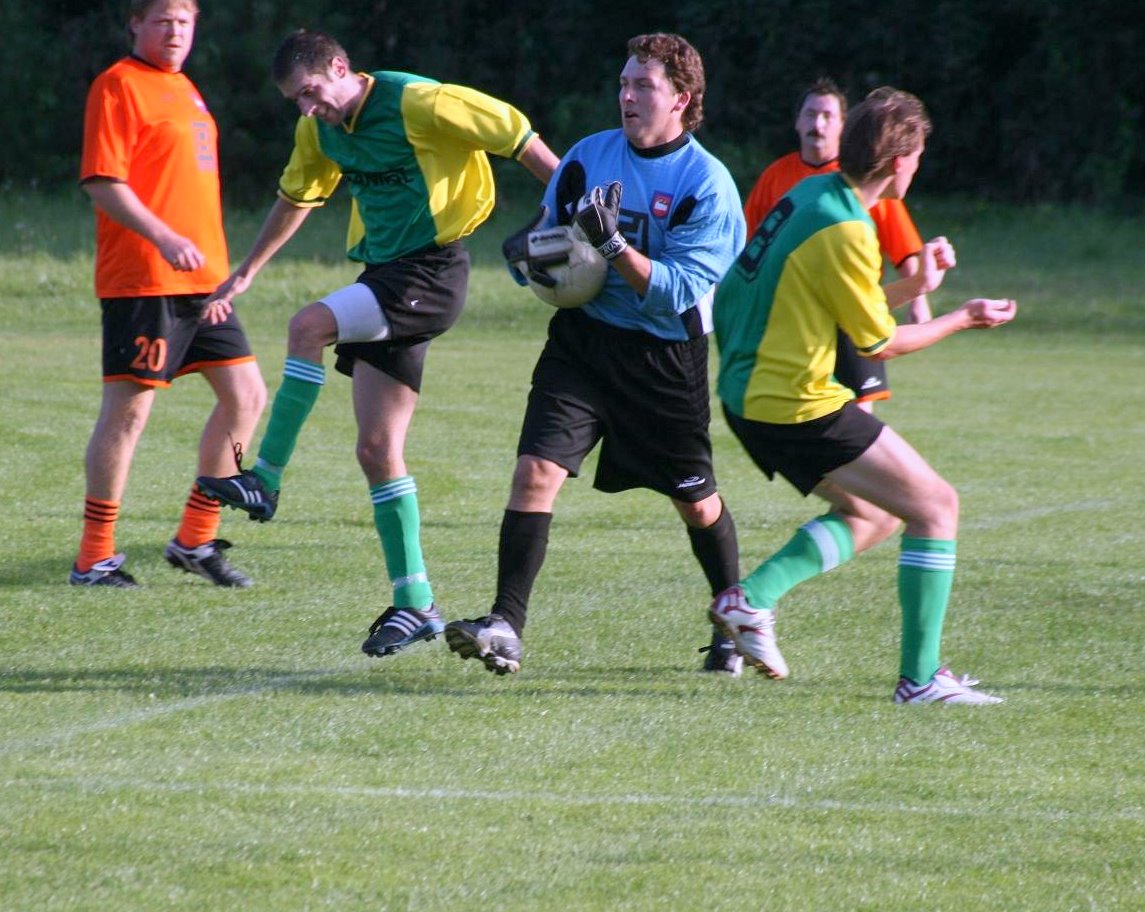 V prvním půli se gólově prosadili oba útočné hroty domácího mužstva M.Skopal i St. Dufka.Po vzájemné spolupráci dali branky po rychlých akcích.Hosté se dostávali před branku Lhoty jen sporadicky a když už měli šanci,bez problémů vše vyřešil brankář Goliáš.