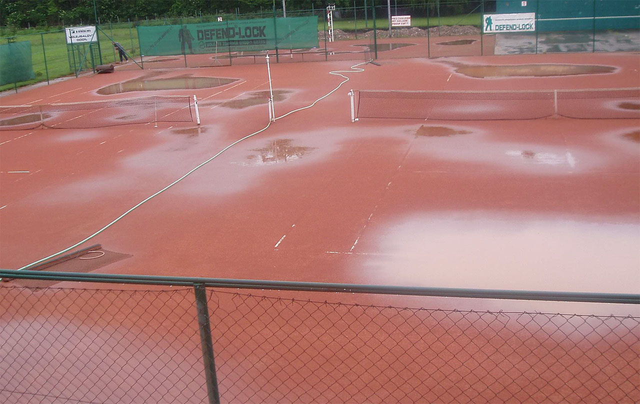 I když v čase začátku turnaje to spíše vypadalo na vodní pólo, společnými silami se podařilo kurty připravit k tenisovým bojům. Celkem deset dvojic bylo rozlosováno do dvou skupin, ze kterých do semifinále postupovaly první dvě dvojice.