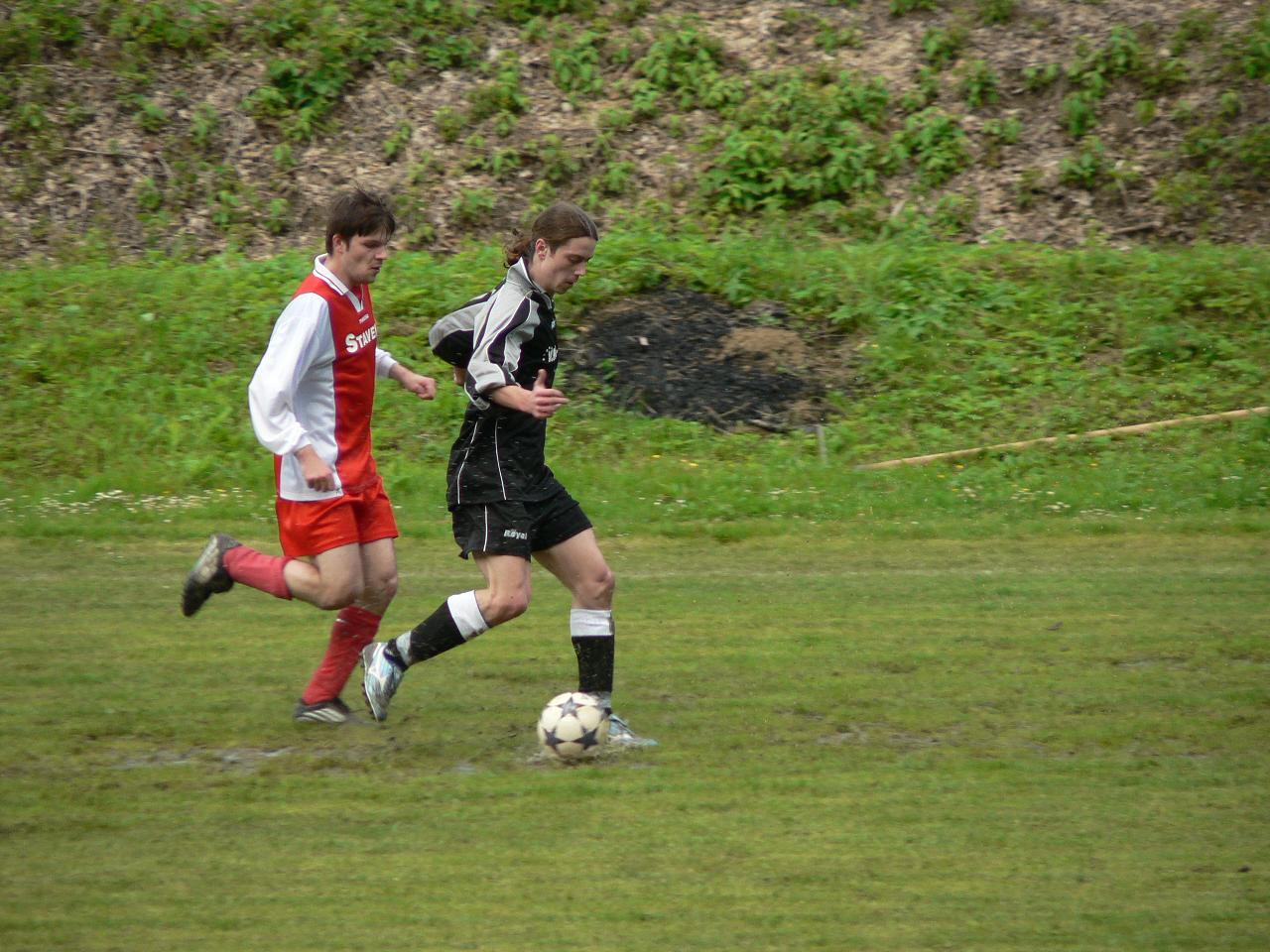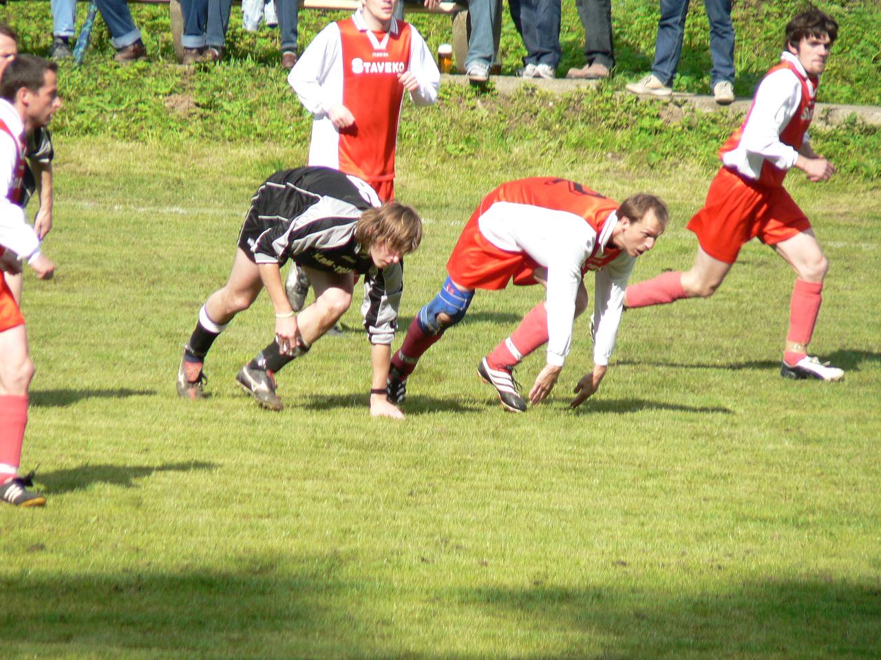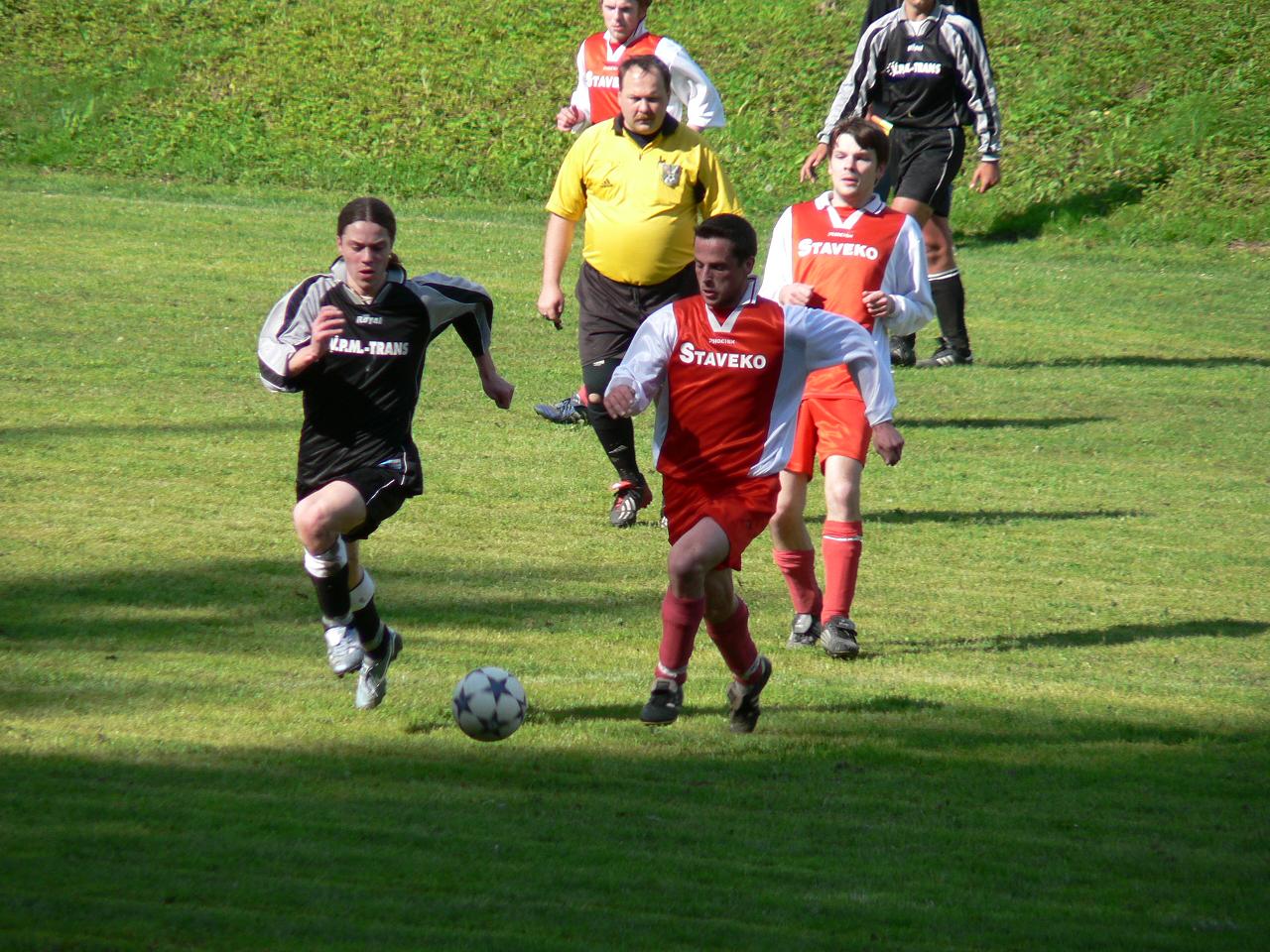 V první patnáctiminutovce kopal po faulu na Kusáka trestný kop náš „špílmachr“ Jirka Dominik. Míč si postavil těsně za velké vápno a jeho prudká a přesná levačka byla neomylná- 0:2!