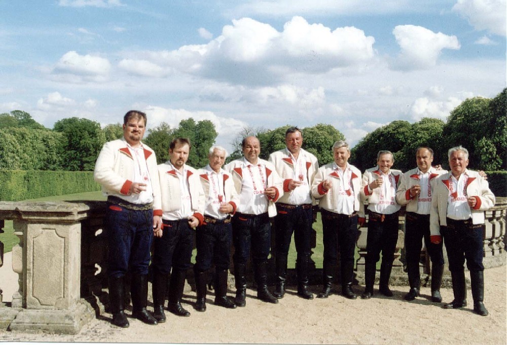 ...Pěvci z Ostrožské Lhoty letos v červnu na zámku v Milovicích.