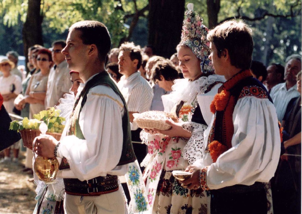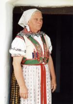 Paní Minksová z Velké nad Veličkou, záběr byl zhotoven letos ve Strážnici během červnových folklorních slavností. Paní Minksovou, jinak maminku primáše Mirka Minkse, jsme tam mohli vidět a potkat v roli průvodkyně ve skanzenu ve starém vodním mlýně.