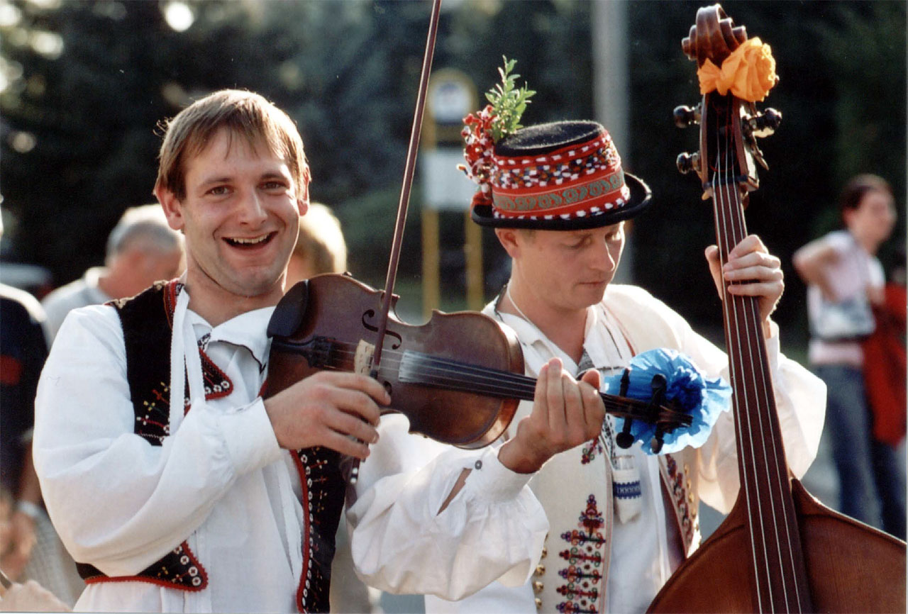 Na stavění hodové májky v Ostrožské Nové Vsi jsme mohli vidět hudeckou muziku, Karla Zykmunda a Juru Moravce.