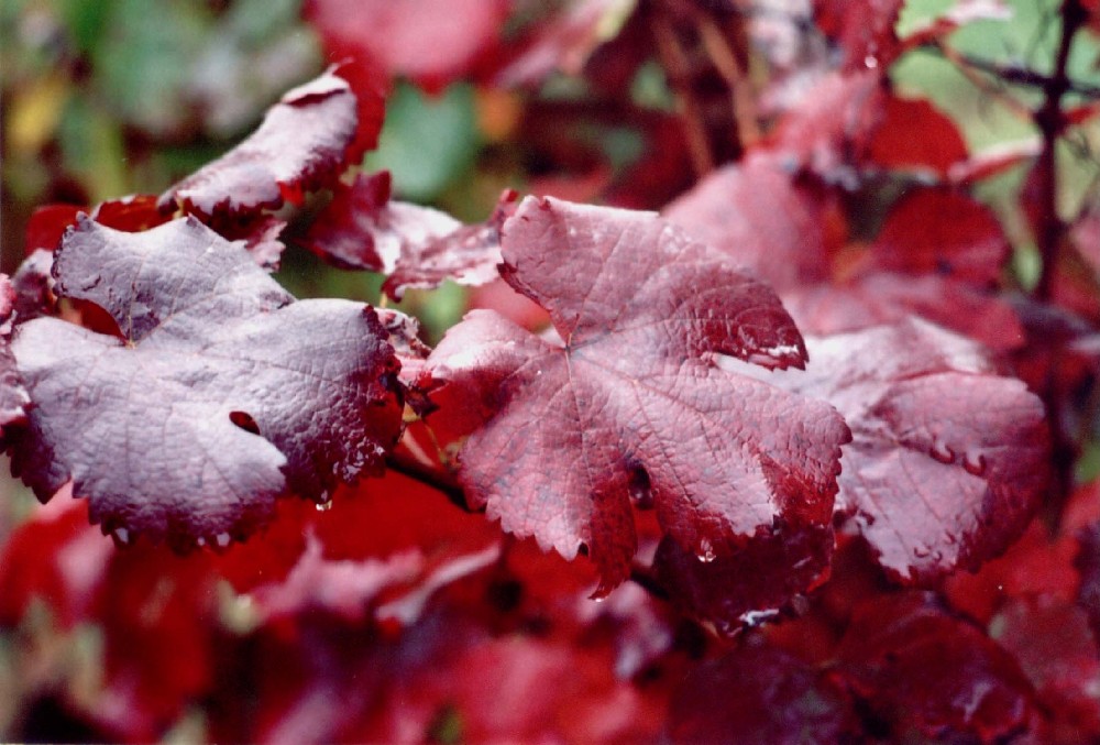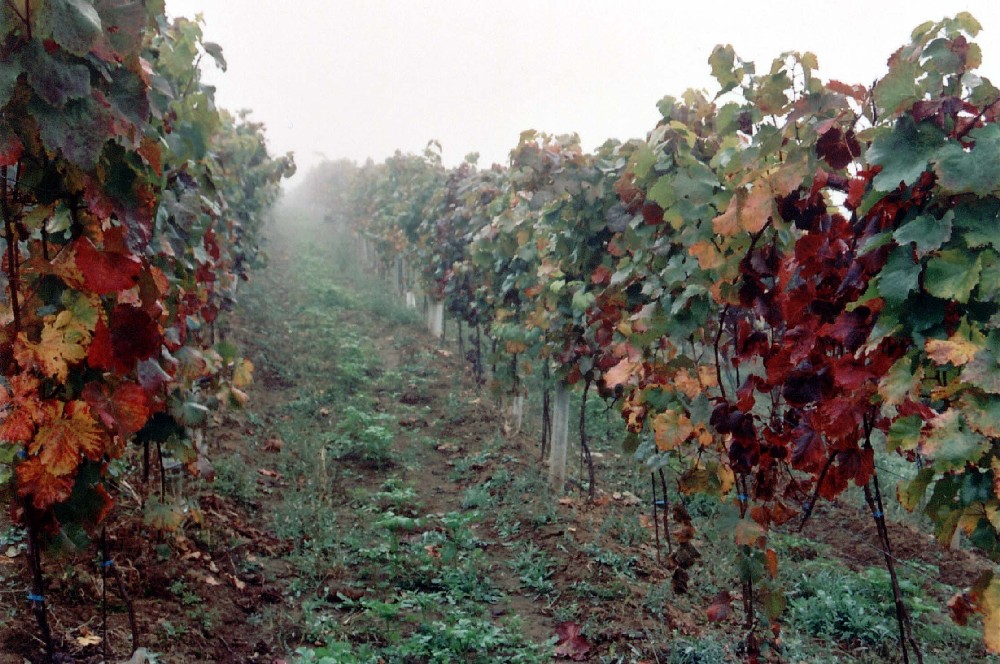 Dva záběry z letošního podzimu, ranní mlha na Modré, barva vína