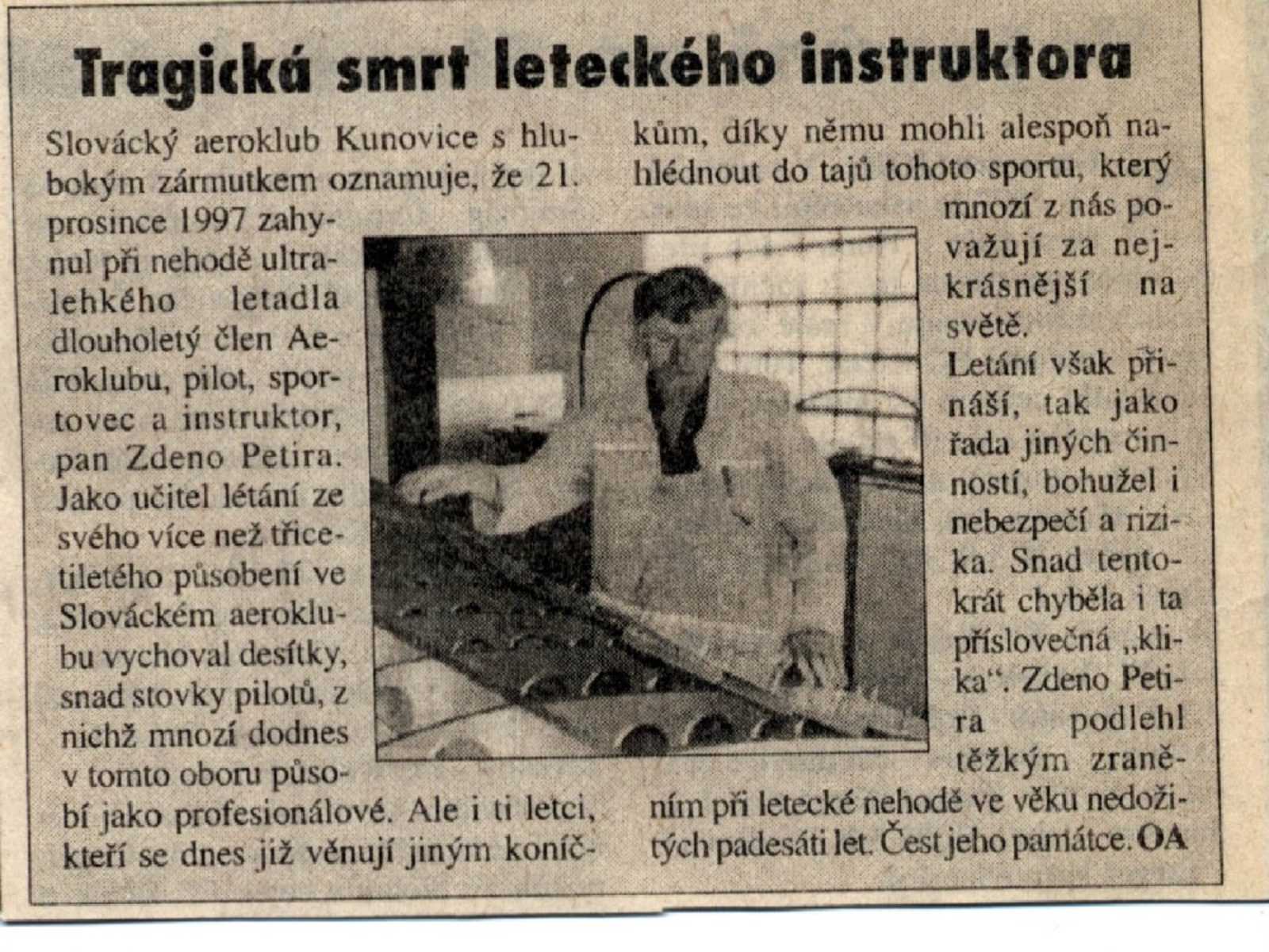 Před osmi lety, těsně před Vánocemi, jsem přišel o jedno dlouholetého kamaráda, kolegu Zdenka Petiru.