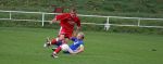 !!!29. Domácí vedou 1:0. Lhotští obránci si nerozuměli, čehož využil domácí hráč Šabršula a z pěti metrů dal hlavou gól.