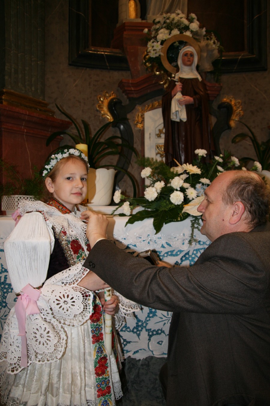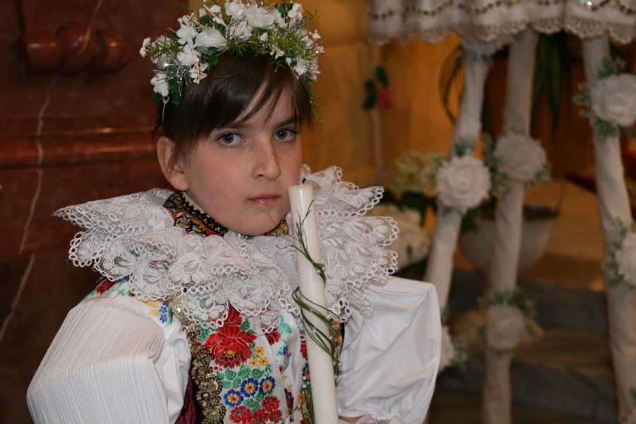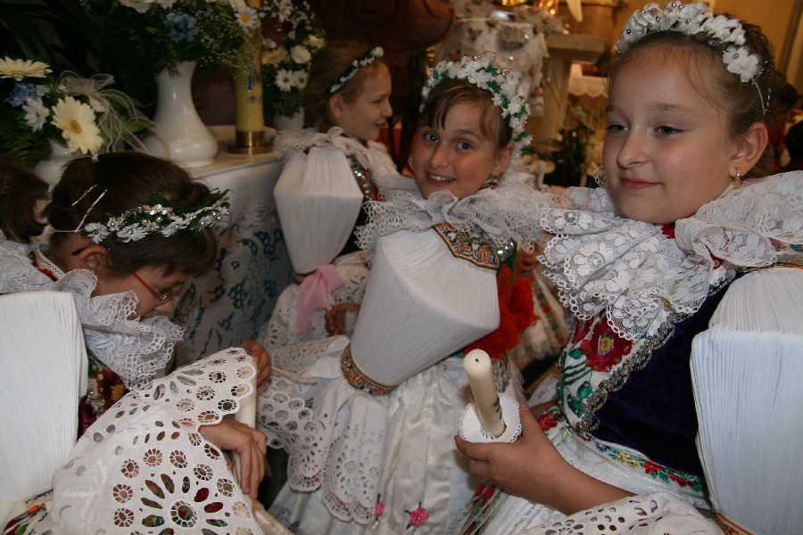 Právě tady šly děti ke svatému příjímání, pokud jsem dobře počítal bylo jich 27! To je opravdu hodně, na Slovácku můžete být svědky svatého příjímání stále ještě v mnoha vesnicích, ale tolik dětí už uvidíte málokde.