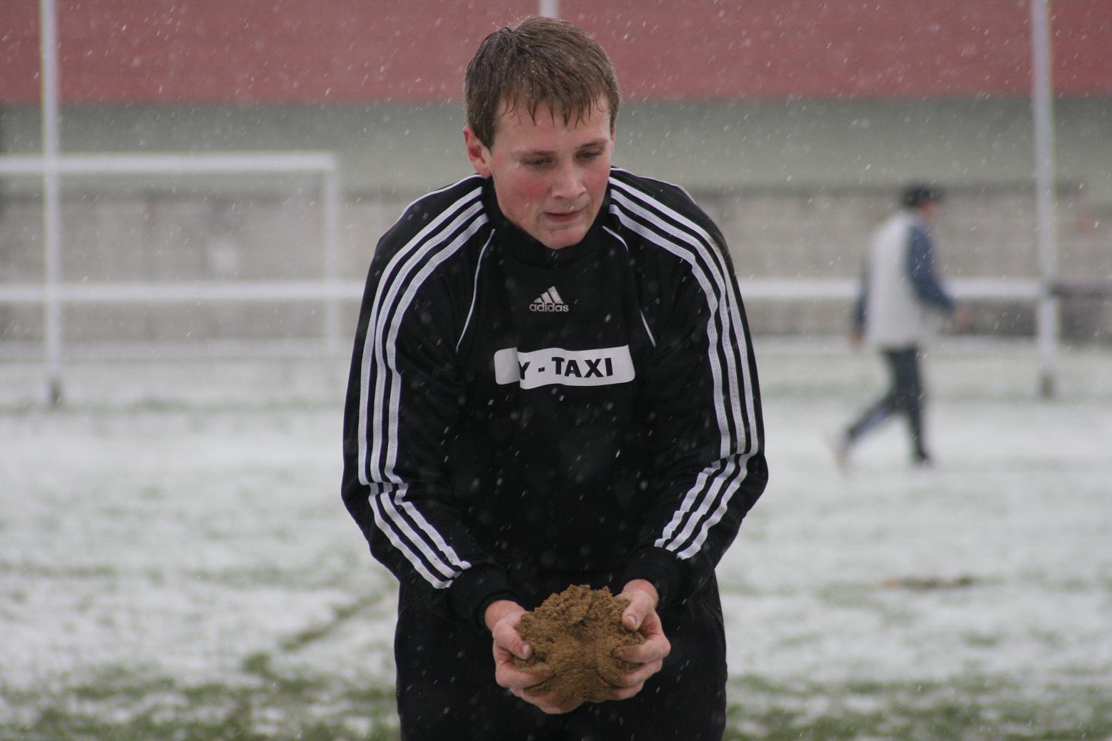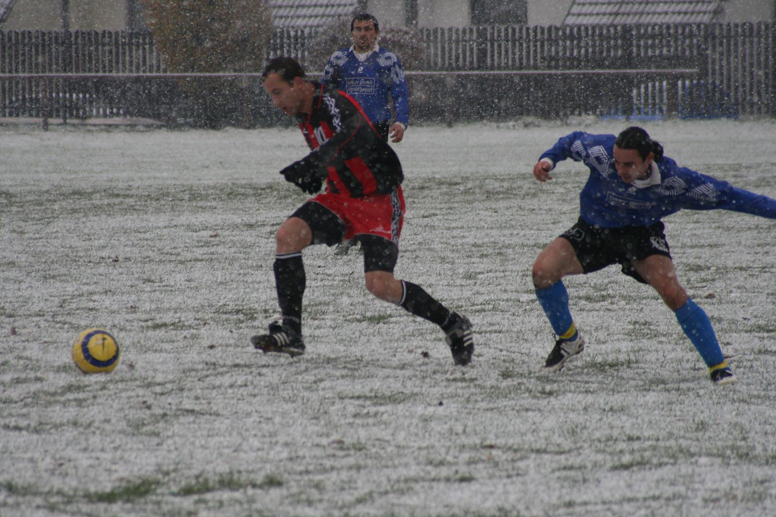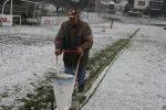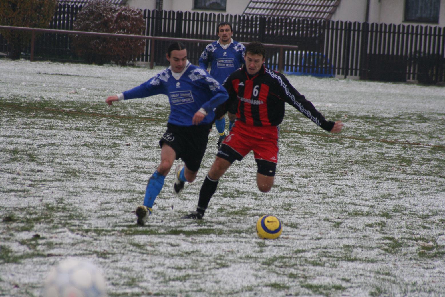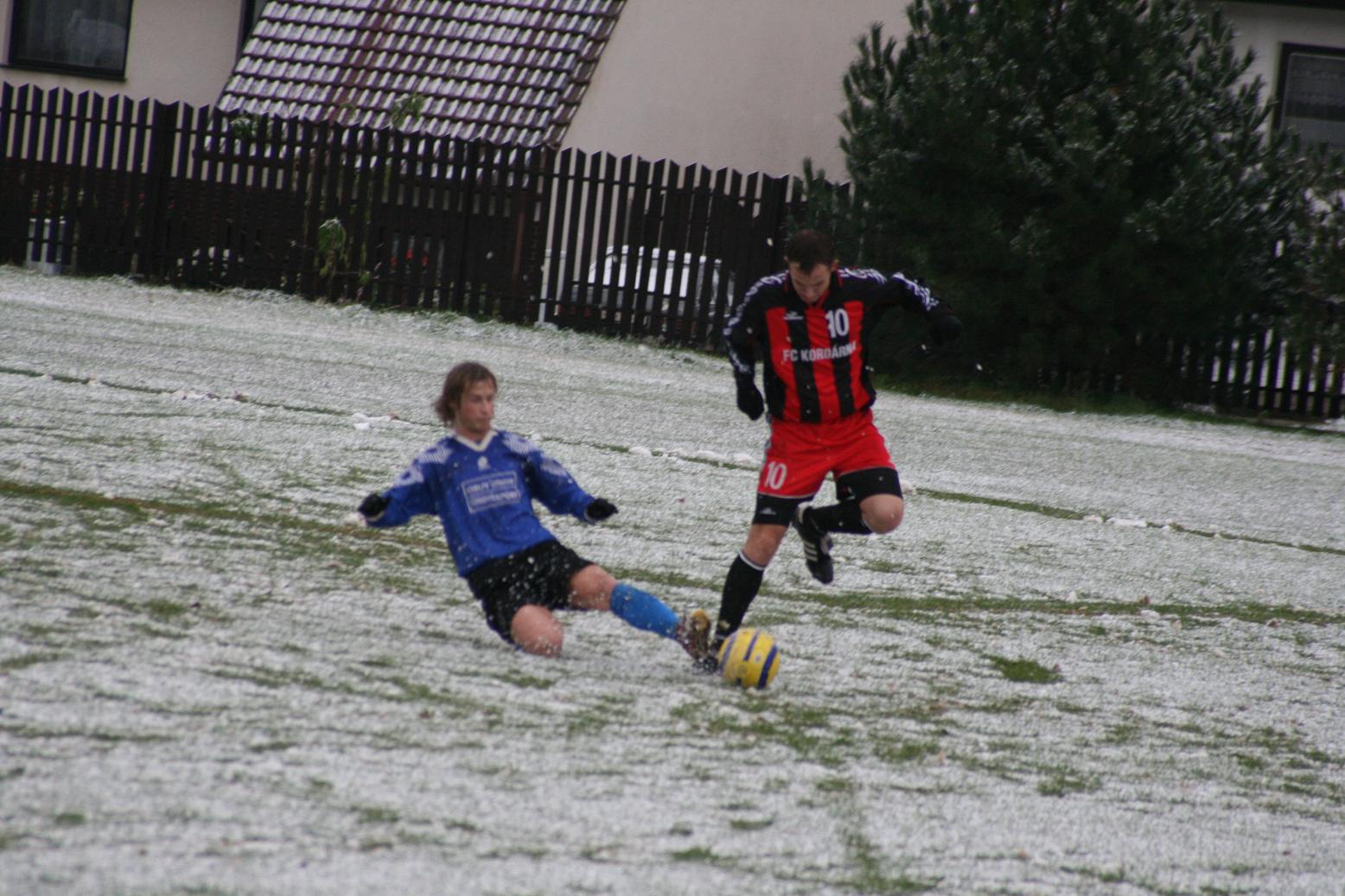 Horňáci se rozloučili se svými fanoušky v posledním domácím zápase nejtěsnějším vítězstvím. V podmínkách na samé hranici regulérnosti se v bojovném utkání přiklonilo štěstí na stranu domácích hráčů. Zápas musel být dokonce v polovině prvního dějství přerušen a hlavní arbitr po sněhové vánici přikázal přelajnovat celé hřiště.