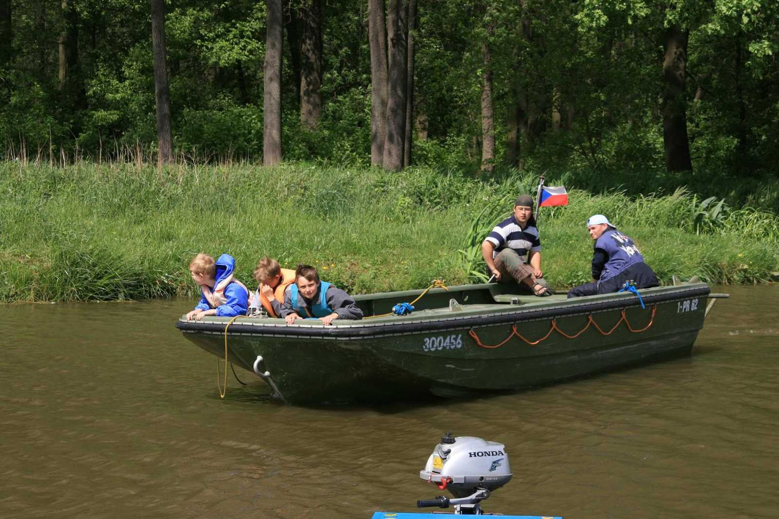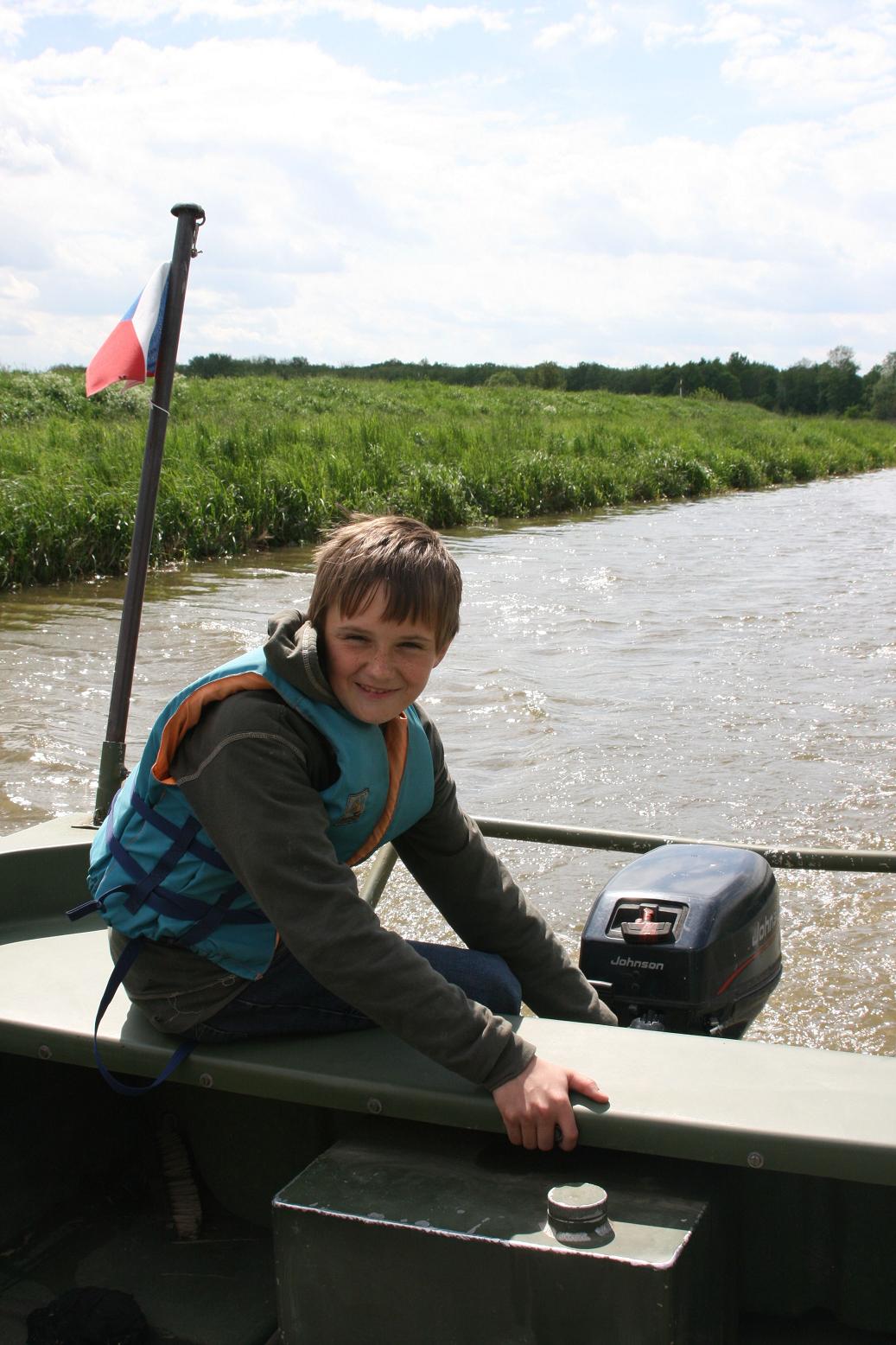 Po zaškolení jsme vyrazili na motorové lodi směr Veselí nad Moravou. Loď, která se jmenovala Oskar, byla pro dvanáct lidí a podle slov obsluhy se ještě nikdy nepotopila - takže jsme s důvěrou nastoupili.