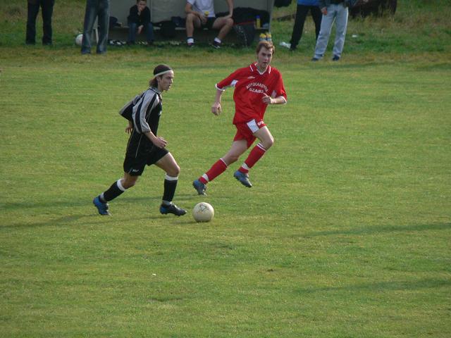 Zápas začal z obou stran velmi opatrně, první čtvrthodina se odehrávala hlavně mezi šestnáctkami obou mužstvev. V 18. minutě zahrozila Lhota po nacvičeném signálu z trestého kopu, míč po ose Dominik,Štergenich, Dominik dostal k posledně jmenovanému, který nebezpečně vystřelil, ale brankáře Osvětiman Klučku nepřekvapil.
