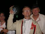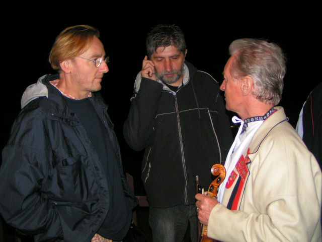 Tři kamarádi - Ondřej Havelka, Břetislav Rychlík a horňácký primáš Martin Hrbáč - při festivalu Ozvěny Horňácka v roce 2004 na půdě stadionu „Strážnéj hůrky“ ve Velké nad Veličkou