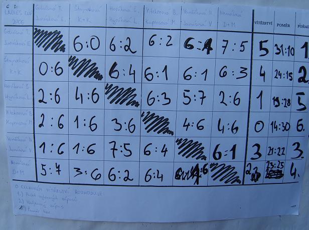 Hrálo se systémem každý s každým na jeden hraný set.